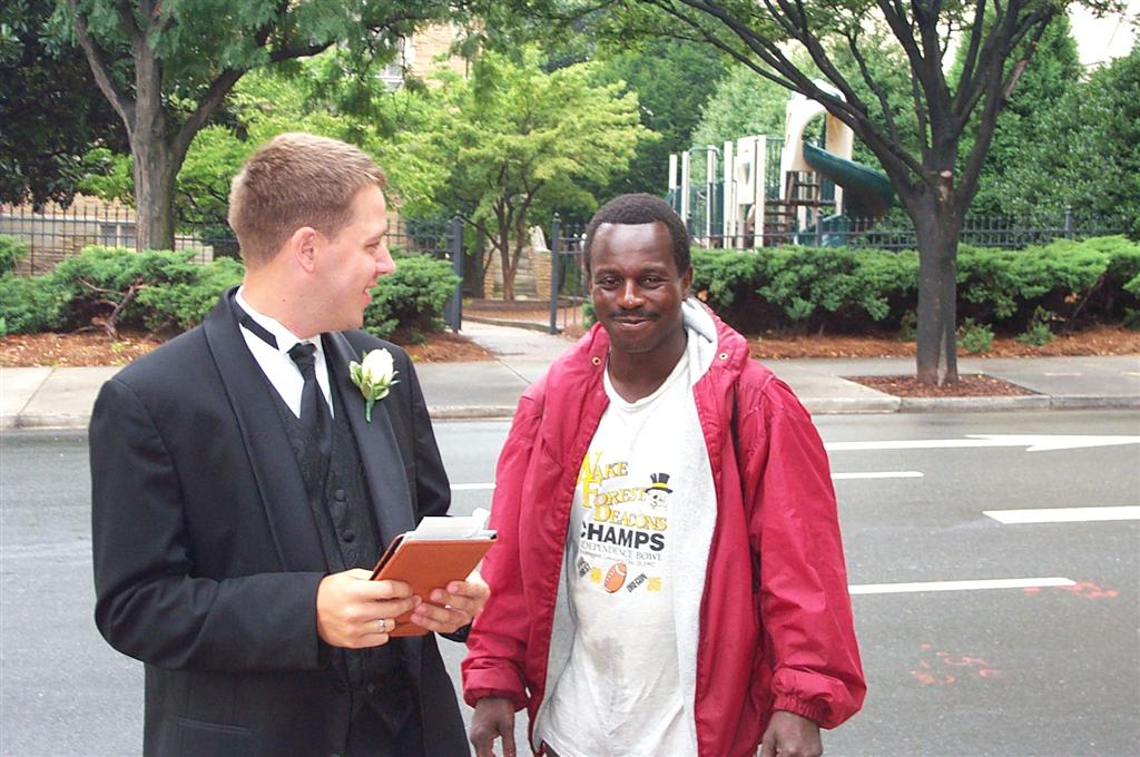 | John and Karen Deak get hitched. Matt asks a WFU fan for some pointers on the toast.   | ||||||||||||
