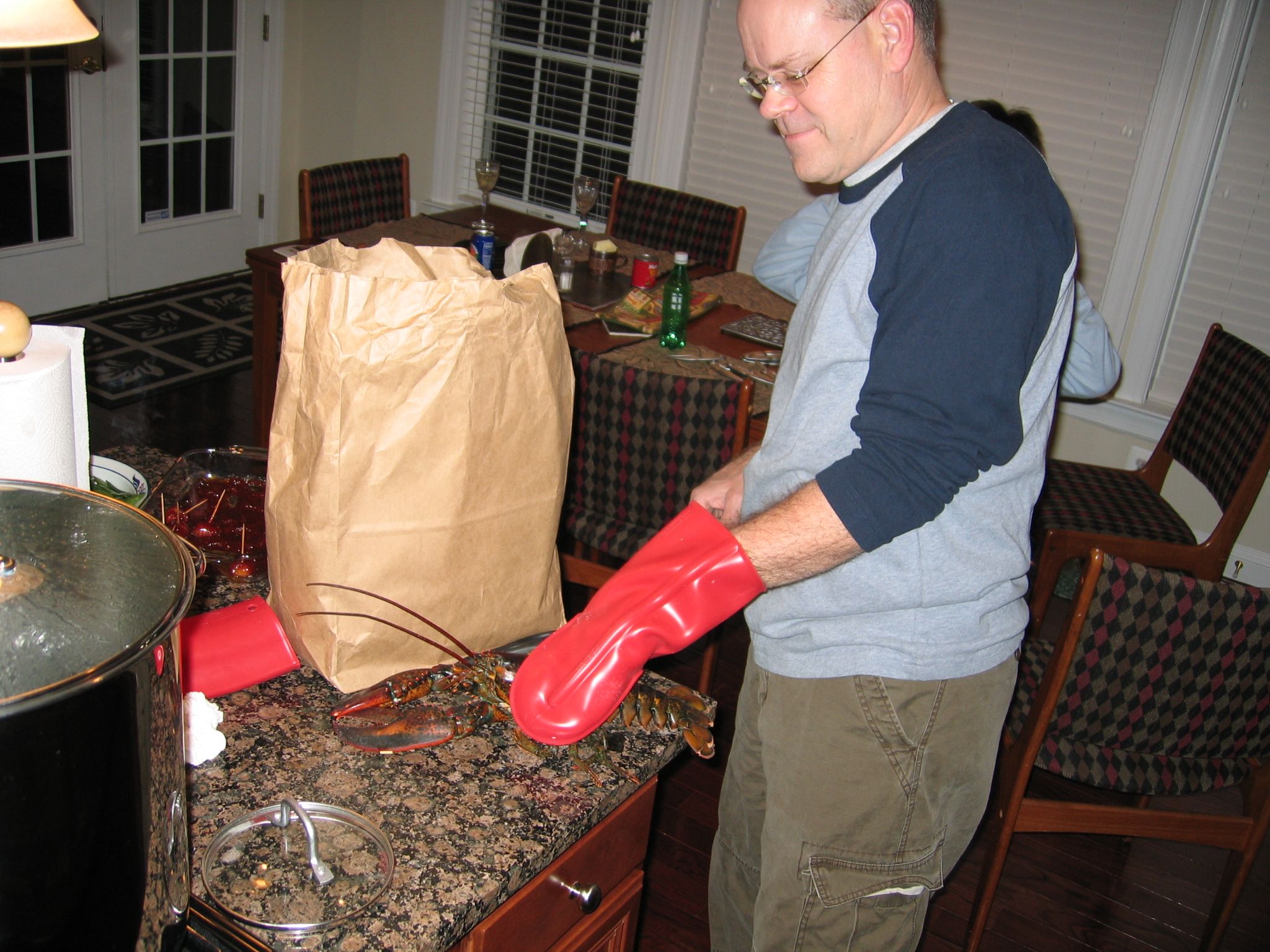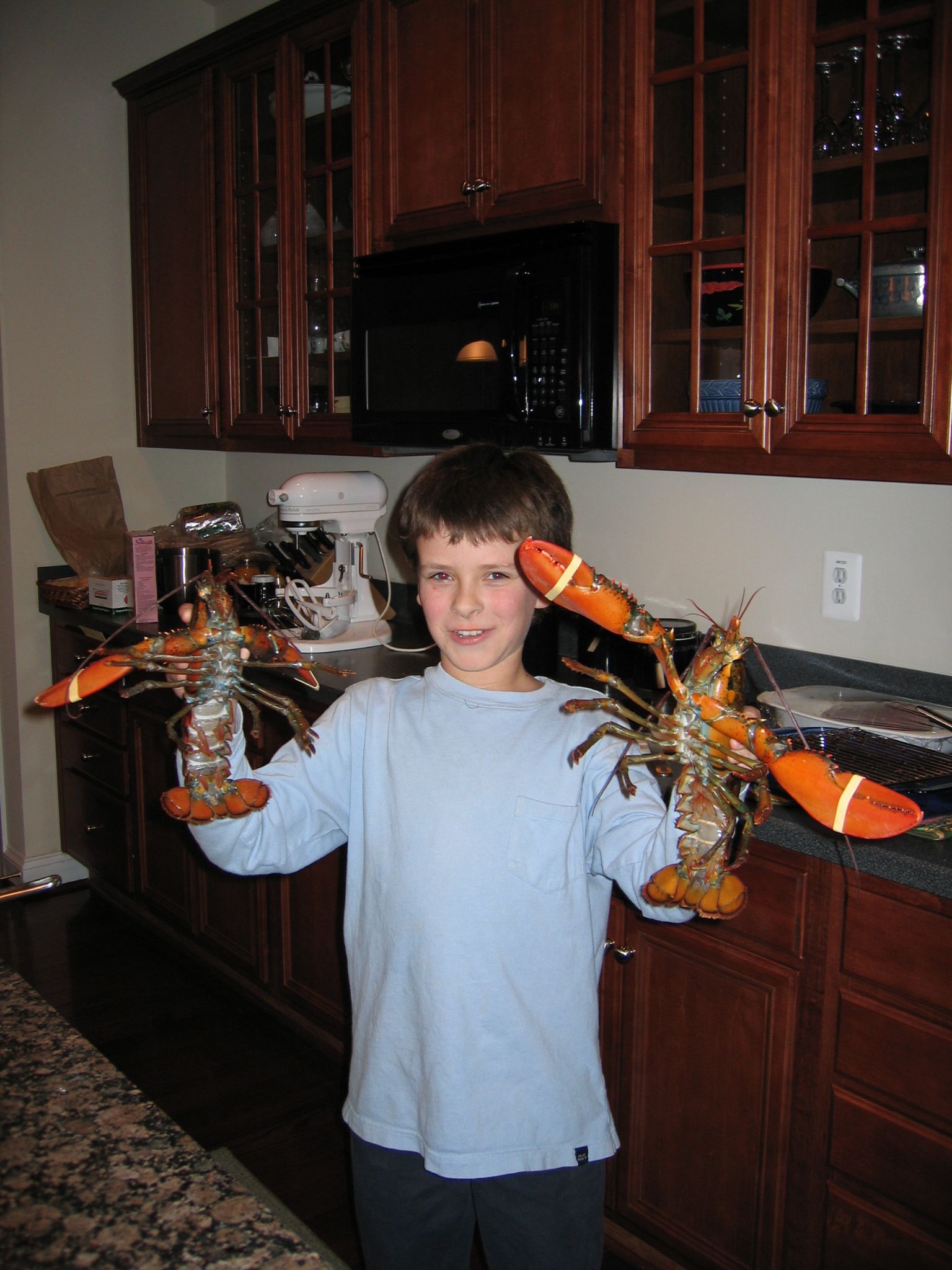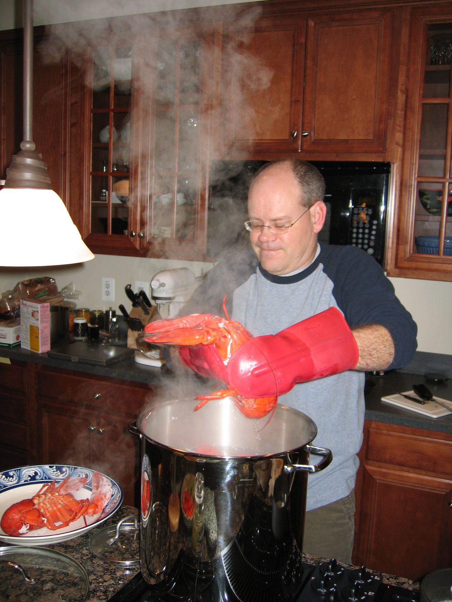 Terry, doing Lobster duty. Terry was later reported to PETA for de-antennaeing a lobster while trying to get the rubber bands off.