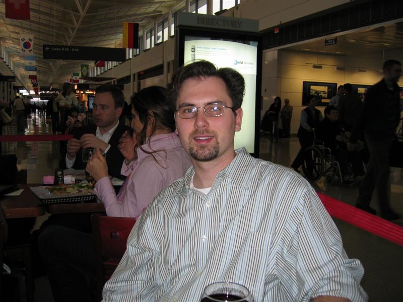 The preflight meal. We're feeling good, made it through the 8 mile long check in and security lines, and we had a half an hour to spare. Little did we know that the insideous French were already plotting against our timely arrival in Rome.