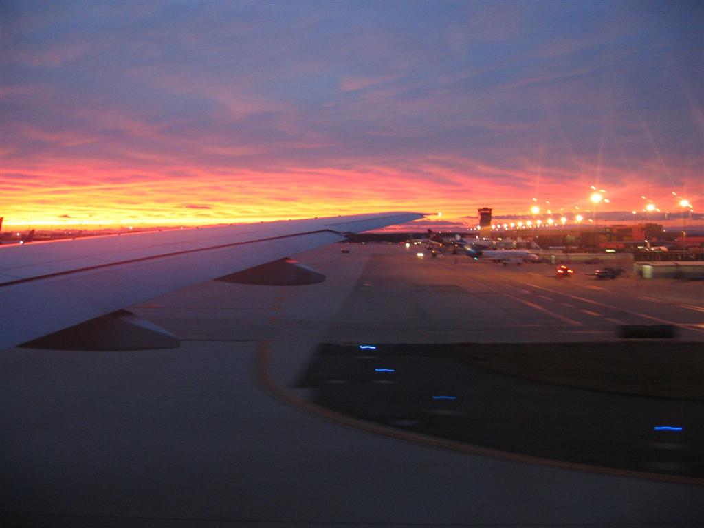 Lift off at sunset from Dulles international. 6.5 hours till Paris.