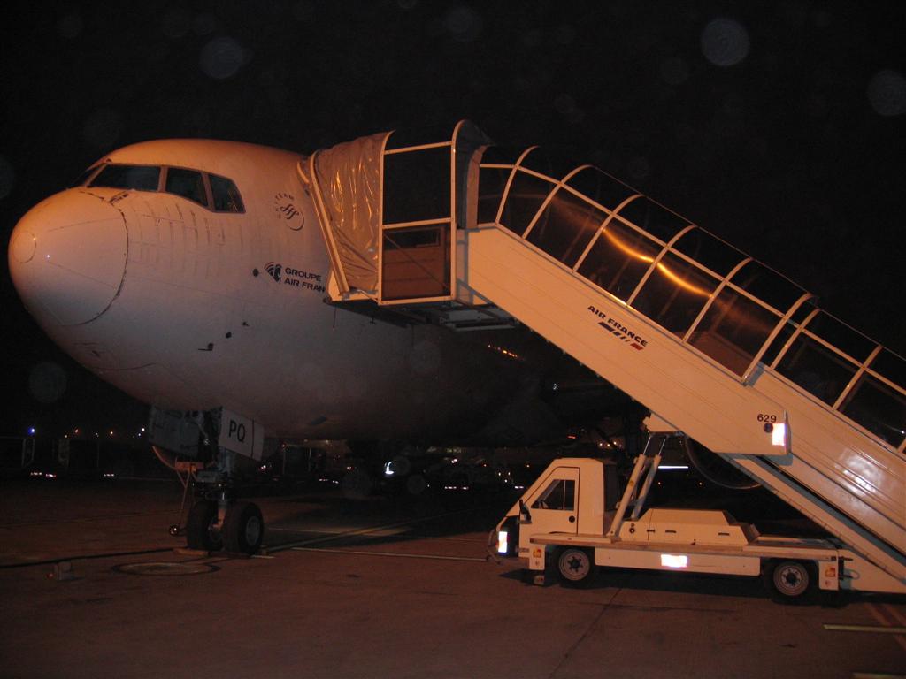 Sign of trouble #1: We taxied PAST the concourse and out to a field with rabbits hopping around in front of the runway signs. This was followed (after a longish bus ride) by Sign of trouble #2: 270 people piling off the plains into the customs line with only two surly customs officers on duity. Sign of trouble #3: The big metal door behind customs opens up to the outside of the airport, so if you have a connecting flight, you're back in the security lines with everyone else.