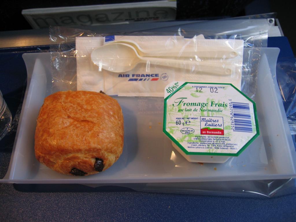 Once we escaped the black hole of Charles De Gaul, we continued on our journey on Air France. Yet again, we were impressed by the service and free stuff. Here you see what is left of my Air France breakfast, AFTER I ate what I wanted out of it (fruit cup, some sweet pastries).