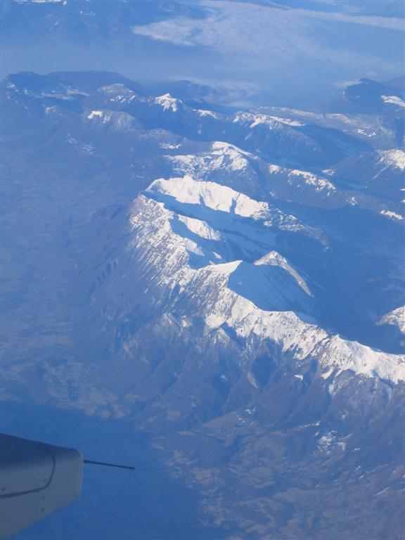We made some navigational mental quantum leaps and determined that we flew south through what we are calling the Pyrenees mountains. They could have been the Rockies, or maybe baked Alaska. Regardless, they were impressive, even from the window of the airplane. As we got closer to Rome, the landscape flattened out some and started looking very much like any rural town, with fields broken up by rows of trees, and little farm houses across the landscape.