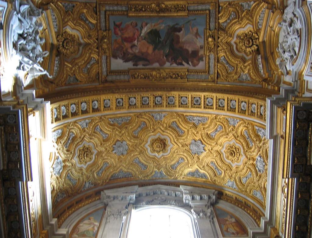By this time we had gotten wise to the Air France game, so we went in the opposite direction from what the stewardess told us. We spoke to a nice lady behind a different counter who said "I'm sorry I have to give you such a bad customer experience, but I do" and then put us on a later flight, after asking if we would like to have our luggage make it to Rome with us. (Apparently we could choose to have them lose it up front, taking the uncertainty out of it - we chose to gamble.) Needless to say we had a good amount of time to kill until the next flight, so we pressed buttons on the stupid French pay phones trying to call the Hotel and tell them we'd be late. Oh yeah, and we took more pictures of the ceiling.