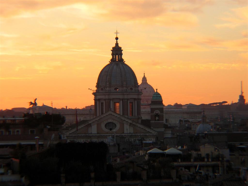 As the sun was setting, we found our way back to the Spanish Steps, a landmark two blocks from our hotel. Here’s the view out across Rome from the top of the steps. The church is the Basilica of Saint Ambrogio (yes the same one we accidentally found earlier in the day). I was forced to Photoshop out the giant crane in the background. You're not missing much.