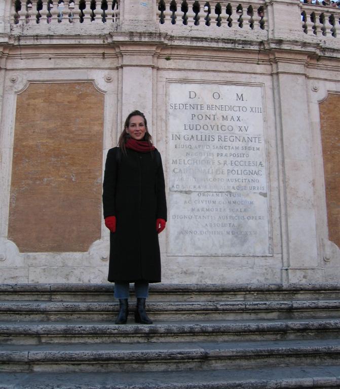 This is Kristina at the Spanish Steps. I’m not sure, but I think the sign to her right says “Welcome to the Spanish Steps. Please, watch your step.”