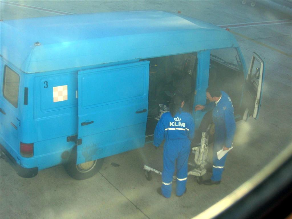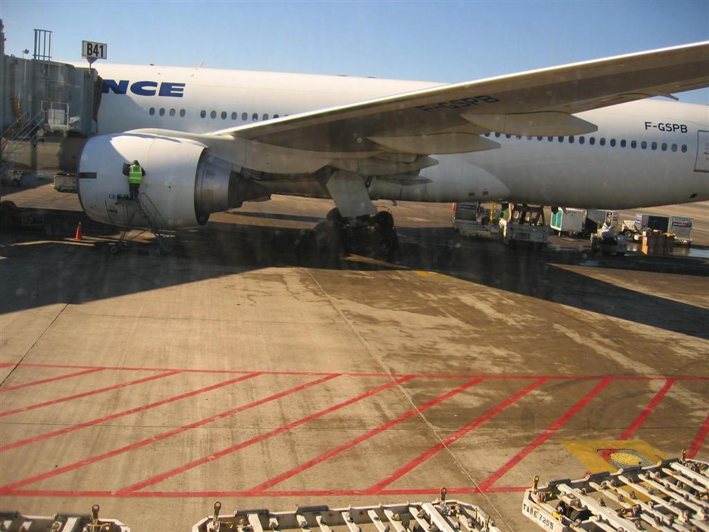 The cause for the three hour delay: a flat tire. Actually, the cause for the three hour delay was a strike of the French working class, protesting the lifting of the 35 hour a week work restrictions. We had to have a KLM flight team change the tire.