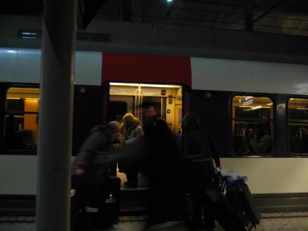 Turns out that to get on the train, you have to press the big green button on the outside of the doors to get them to open. Silly French.