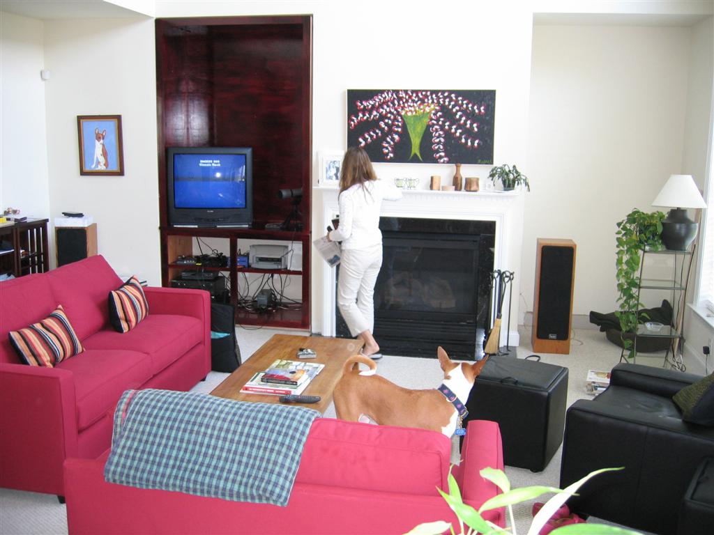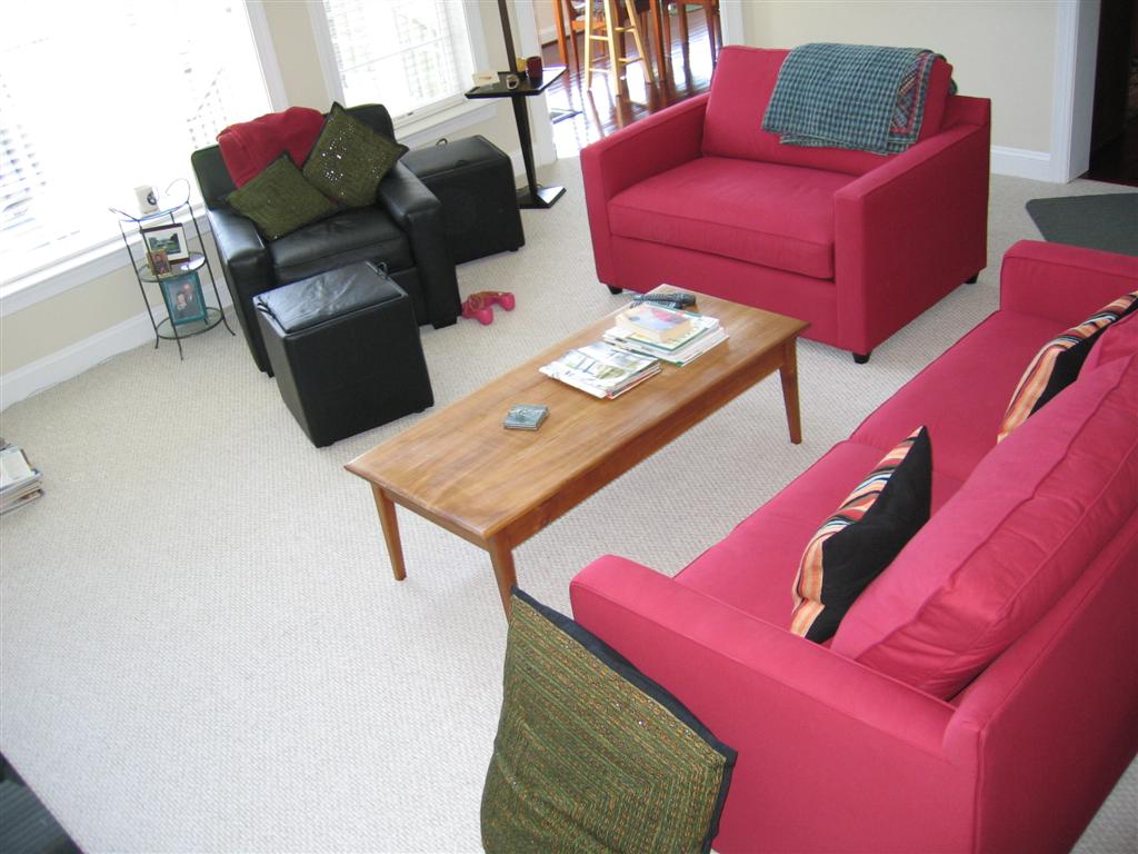 Well, the chair isn't red, but everything else is. If Will had his way, the black couches from the batchelor days might be making a comeback with all this red, but alas, Will doesn't get his way about much to do with the batchelor days furniture.