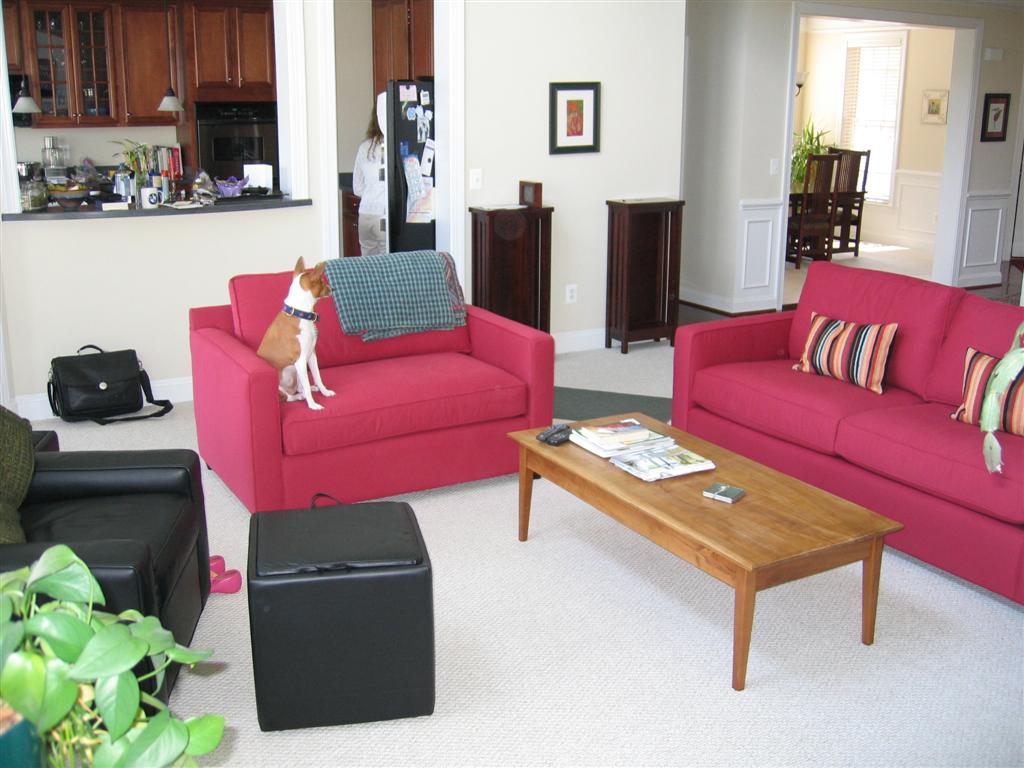 Tis the season for red, white, and blue! We've sort of neglected the white and blue bit, and went all out with red. Here are pictures of the new sofa, and the new paint scheme in the dining room. Beware - there's lots of RED!
