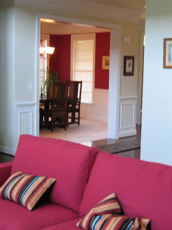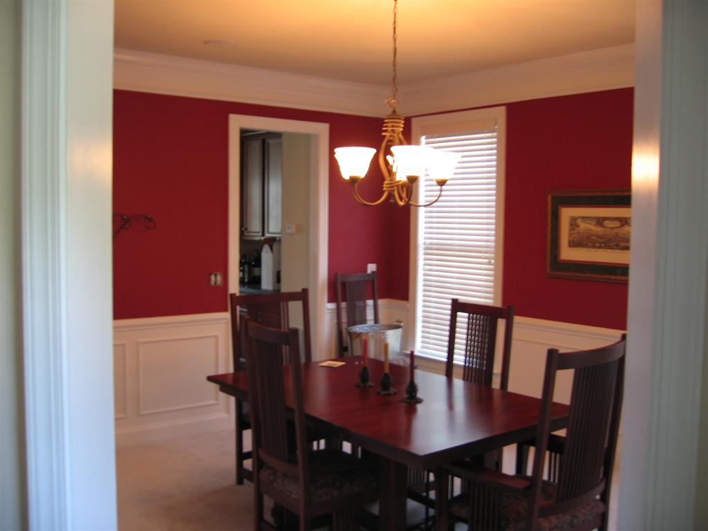 And here's the new dining room color scheme. I'll give you a hint, the color is a shade of red.