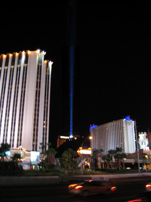 Finding our way home was easy - look up and you could see the beacon on the top of the Luxor from anywhere. The bright specks in the beam are bats.