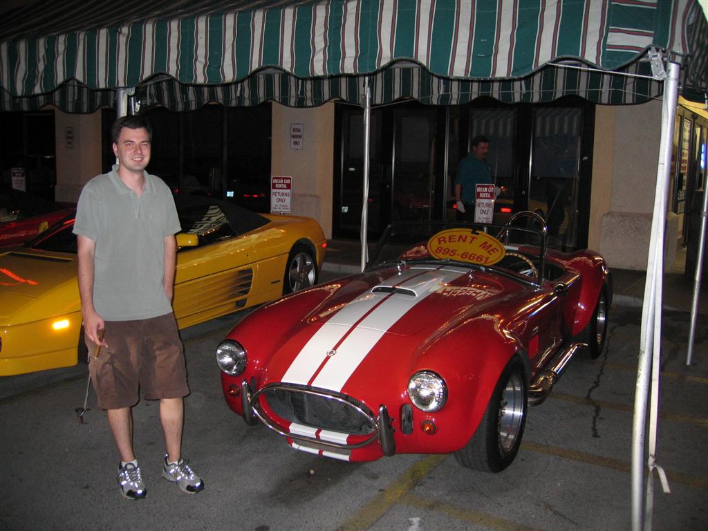 Around 350 bucks and 50 cents a mile you can drive a Cobra around the strip. 500 bucks for a Ferrari, and a buck a mile. We settled for pictures.