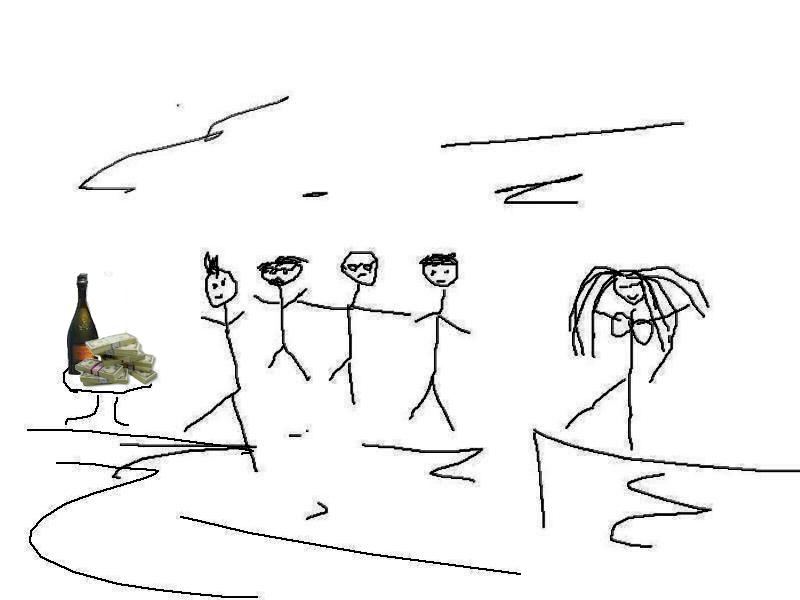 You'll note there aren't any pictures of Vegas strippers. Very much like the Michael Jackson trial, photographers were not allowed. I have included an artists rendition of the bachelor gang being financially abused at the club. After a mere hour, and a three hundred dollar bottle of champagne, we abandoned the traditional bachelor party idea, and headed out for less conventional, less expensive pursuits.