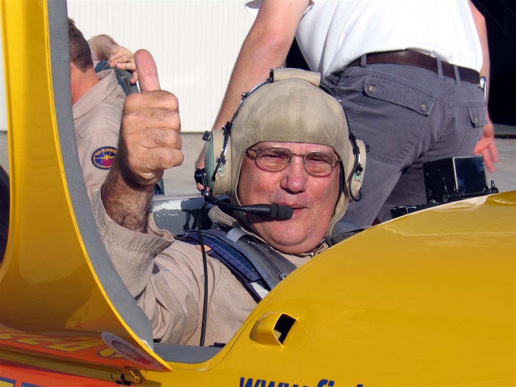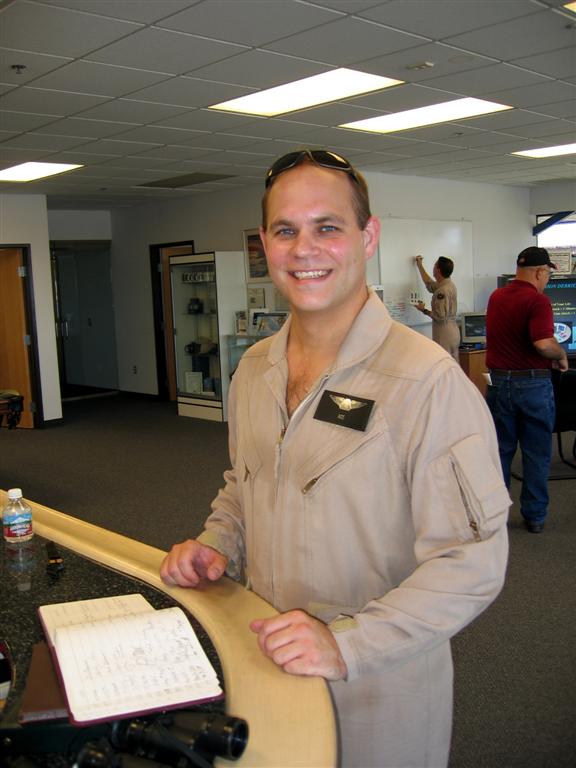 Here's a shot of Hank, during the high speed fly by. Smoke's on, and we're doing about 175 miles an hour past the tower. Not to over do the Top Gun references, but I think someone just spilled their coffee. "I WANT SOME BUTTS!"