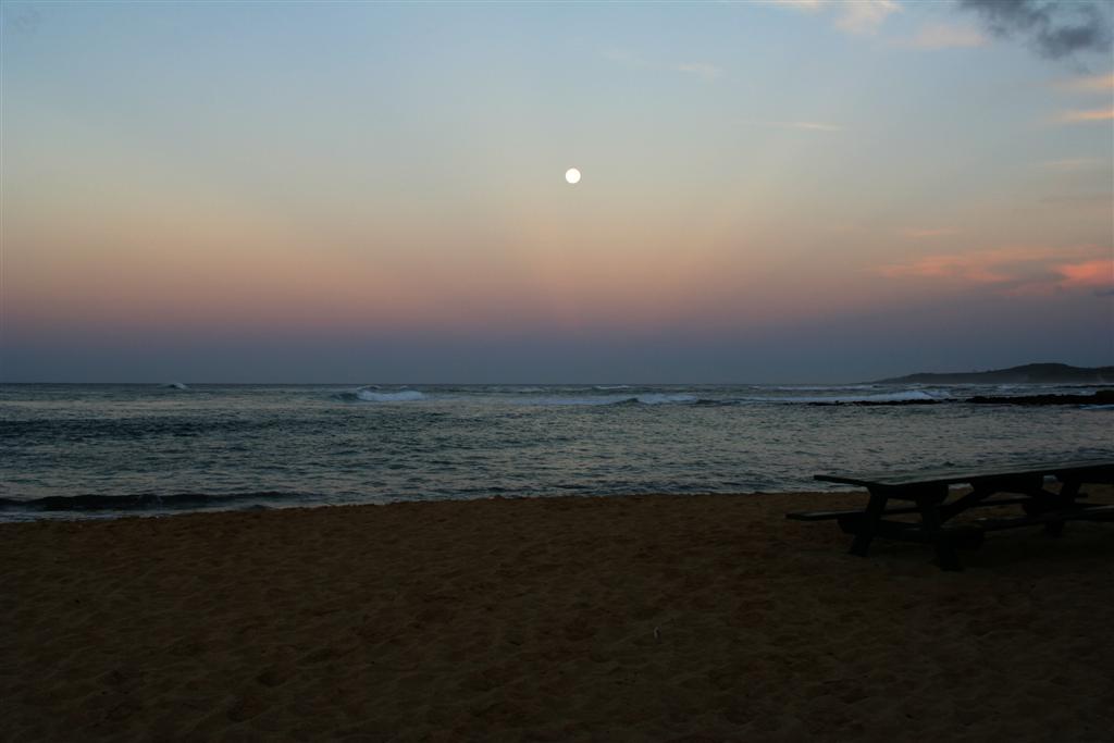 Sunrise at Poipu beach the next day. The moon was still up.