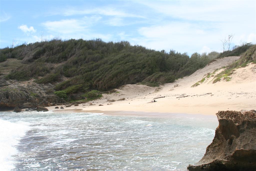 Instead of rocks and pounding surf, we found this little paradise. If you look hard you can see Kristina laying out on the beach.