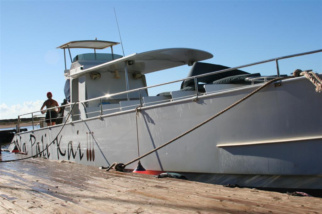The next day, we went on a snorkle cruise off the Na'pali coast. The entire north shore of Kauai is inaccessable by car, but boat and helicopter tours are available.