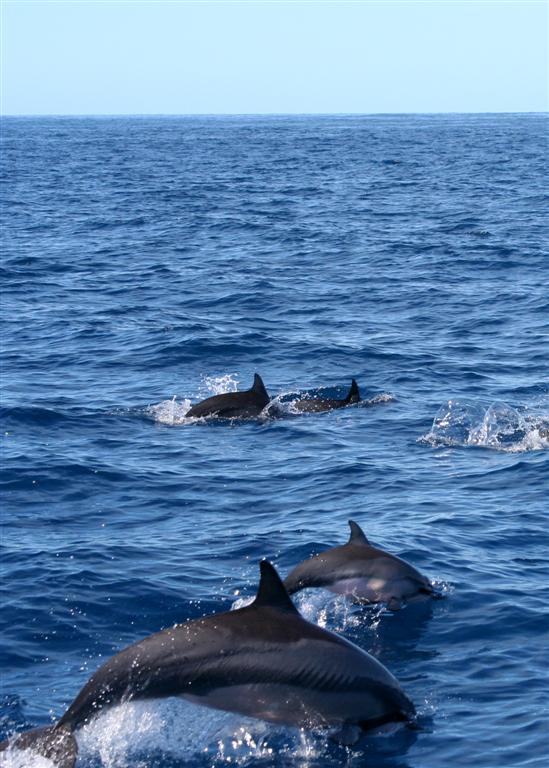 The spinner dolphins apparently travel in large pods, and the rule of thumb is that for every one dolphin you see on the surface, there's 3 more below.