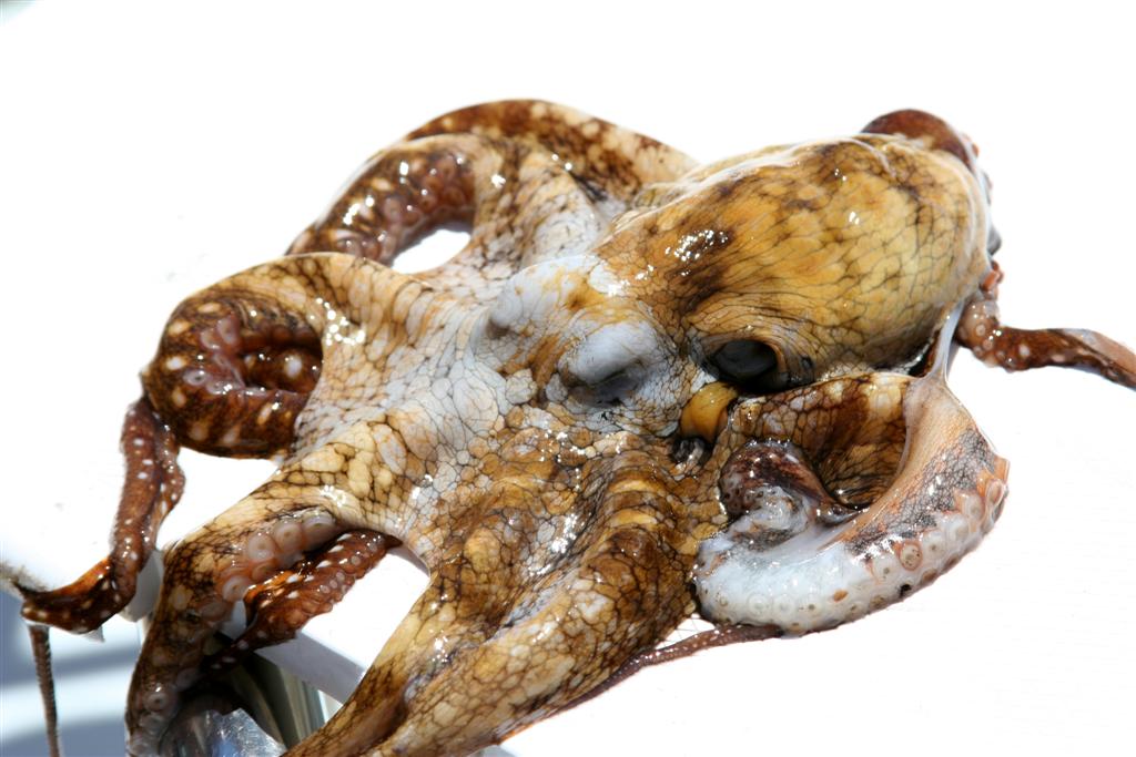 We went snorkeling in Caves Bay (I think that's where it was) and our guide found this squid under a huge coral outcropping. After catching it, he said he was planning on eating it.