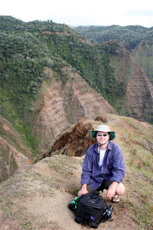 This is Will, sitting right next to a spot on the cliffs where the trail had crumbled off into oblivion. Yep, no more than 10 feet behind him, there's a 1500 foot drop off. Remember this view for when we get to the far away shot of the Cliffs of Insanity.