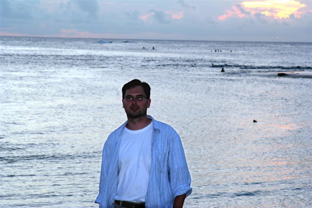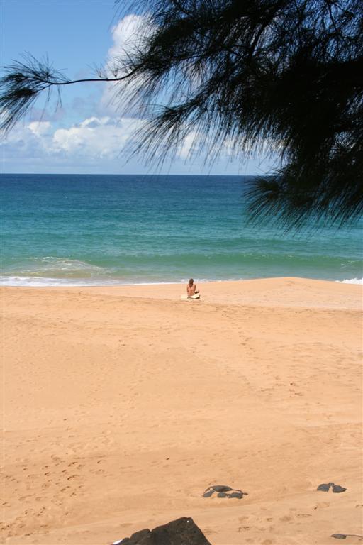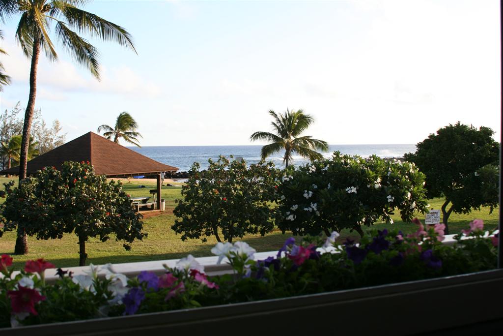After our hike through the swamp, we came back for one last swim on Poipu beach, and then had drinks at sunset in Brenneke's bar on the beach. Here's a shot from out the bar window.