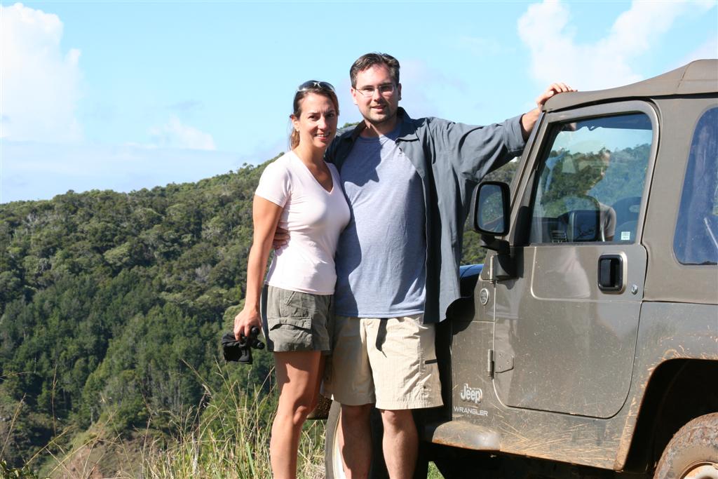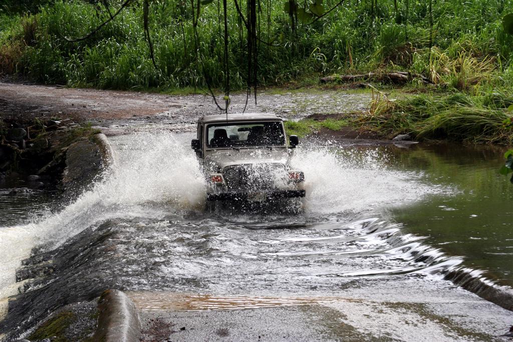 I neglected to mention that in order to GET to the jungle for the Jungle Hike, you had to drive through the jungle quite a ways. The Jeep did very well in this activity, fording several creeks, mud holes that went up to the doors, and several rather large rocks. Well, OK, we didn't ford those... This is Kristina, getting her Jeep schwerve on.