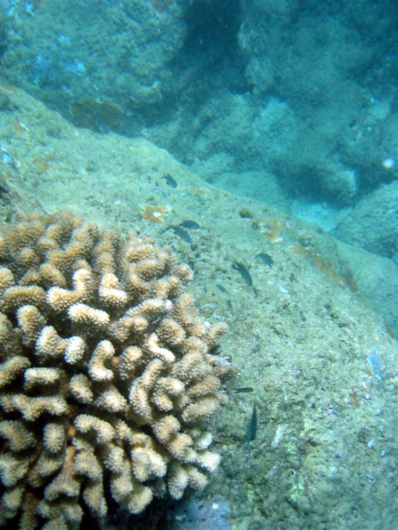 In the rare shot that actually came out looking good, often nothing was actually IN the photo since you couldn't really tell what you were shooting at. For example, the coral here looks great, but the little fishes were decidedly not the desired subject.