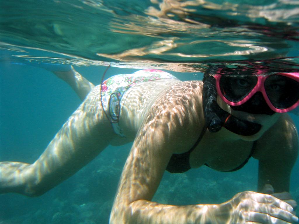 Most of my shots of Kristina underwater turned out too murky, or included only a flipper, or a lot of bubbles, or sometimes of some other person, wearing similar clothing. This one came out suprisingly well though.