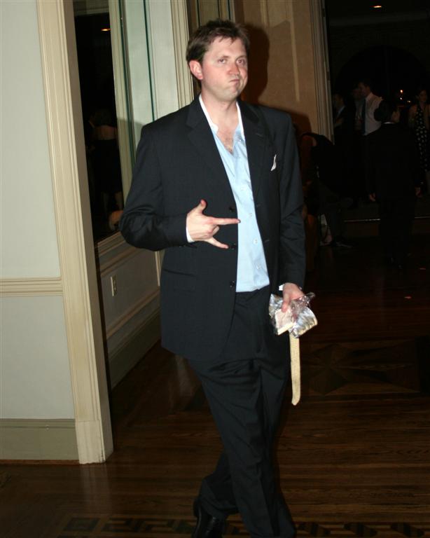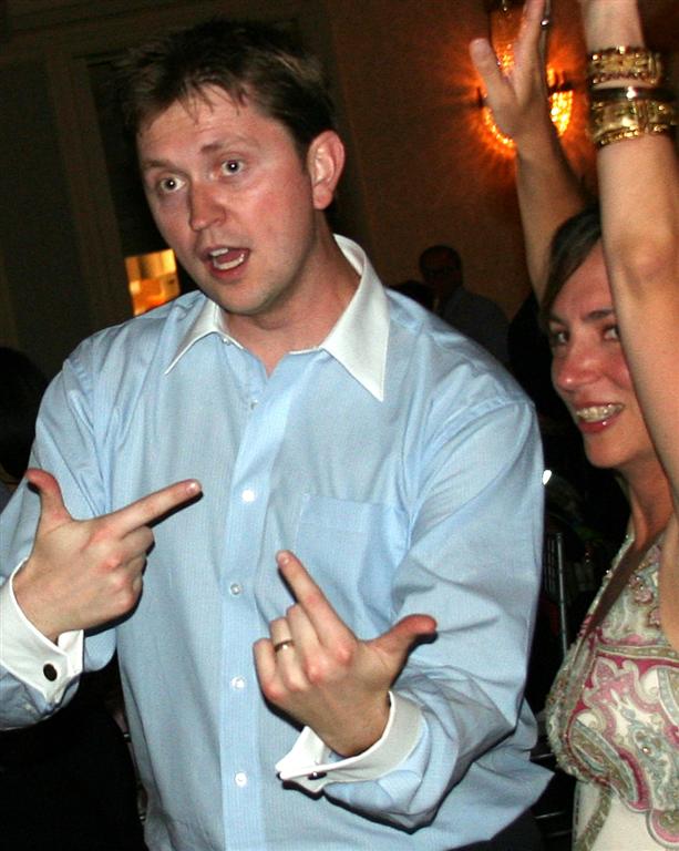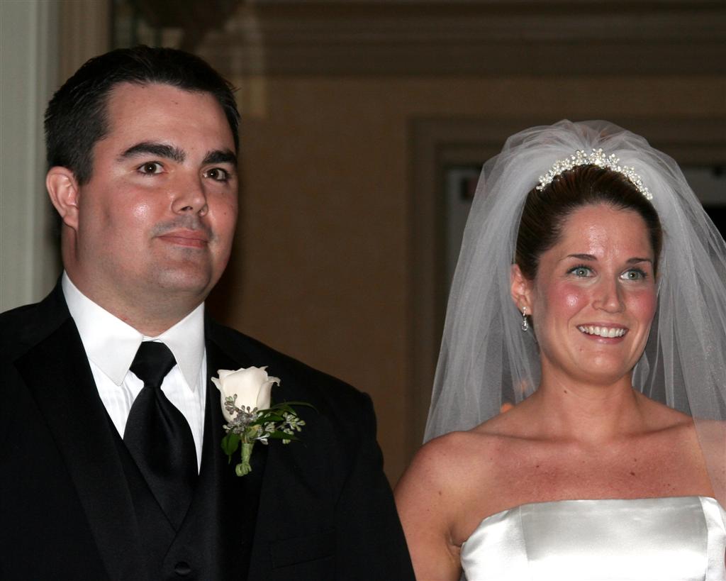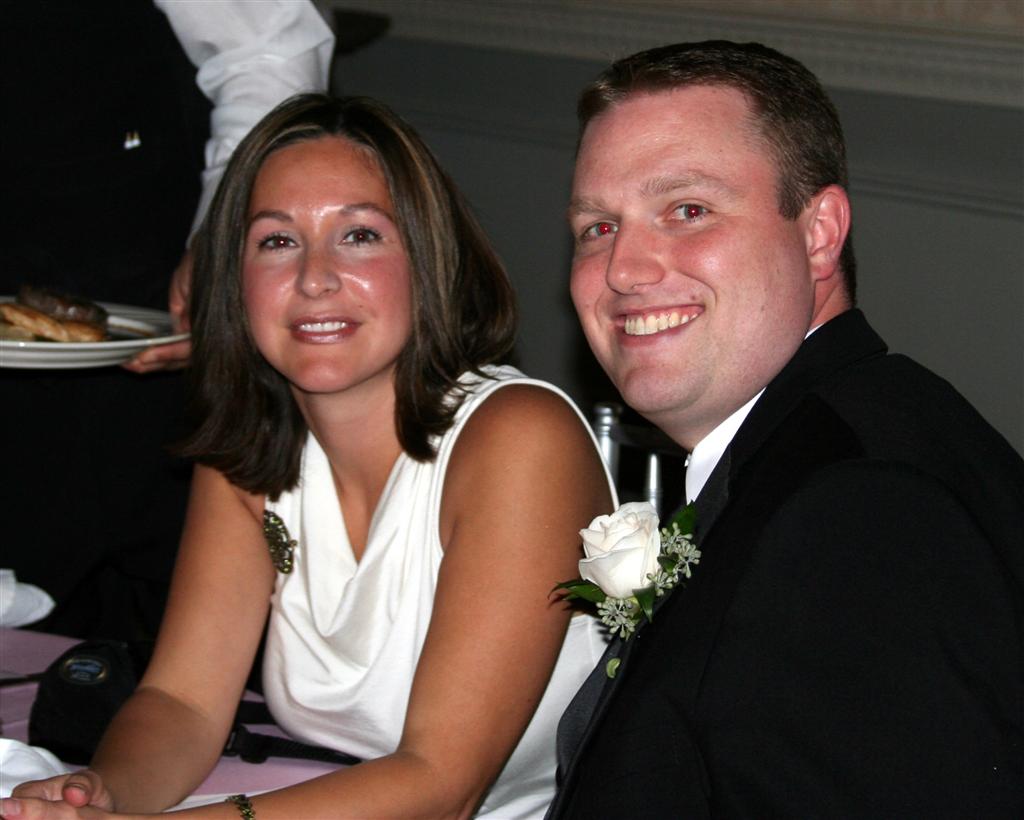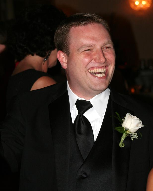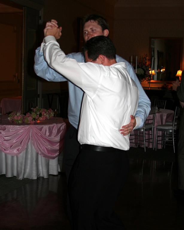 Jamie and Ashley, just prior to the reception. Jamie still looks tall, even with Ashley in heels and standing on the second step. And was he getting ready to flip Will the bird???