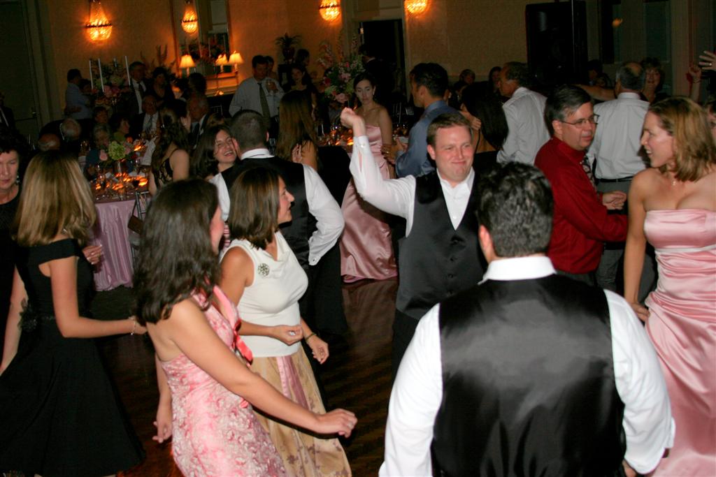 After appetizers we were all seated in the dining room. It was a VERY fancy looking affair with flowers everywhere, a live band, and more forks than my feeble brain knew what to do with. Ashley and Jamie obviously had encountered this proliferance of flatware before, as evidenced by their relaxed demeanor.