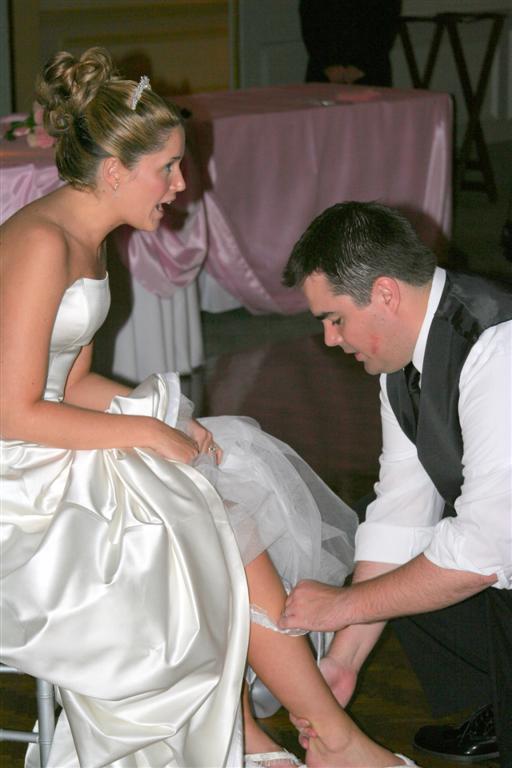 What reception would be complete without the whole garter toss thing? Tim and Michelle get that out of the way, although Tim had to take a Mulligan and throw twice.