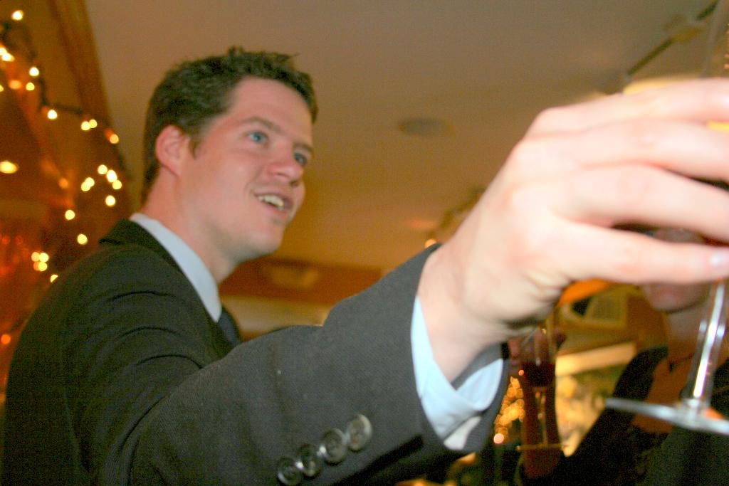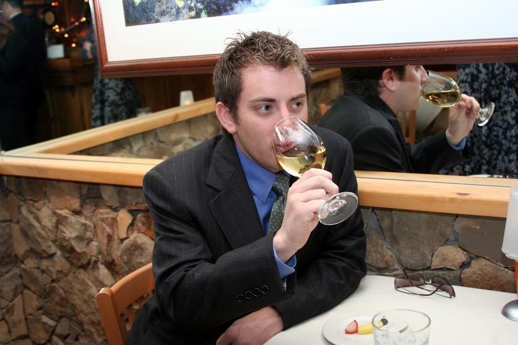 DJ, looking pretty spiffy himself, samples the chardonnay.