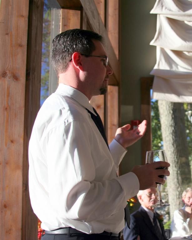 Will gives his toast to the bride and groom. He also makes a plea for some good dirt, possibly with photographic evidence, for use during the reception in RTP early next month. Email suggestions to wvaughn@netmonster.com