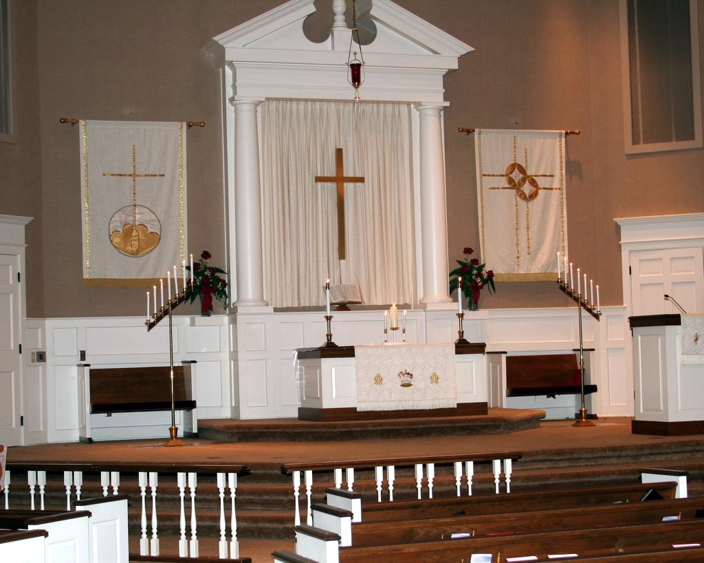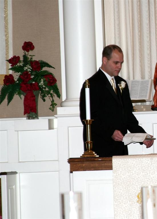 Ryan gets the altar ready for the service.