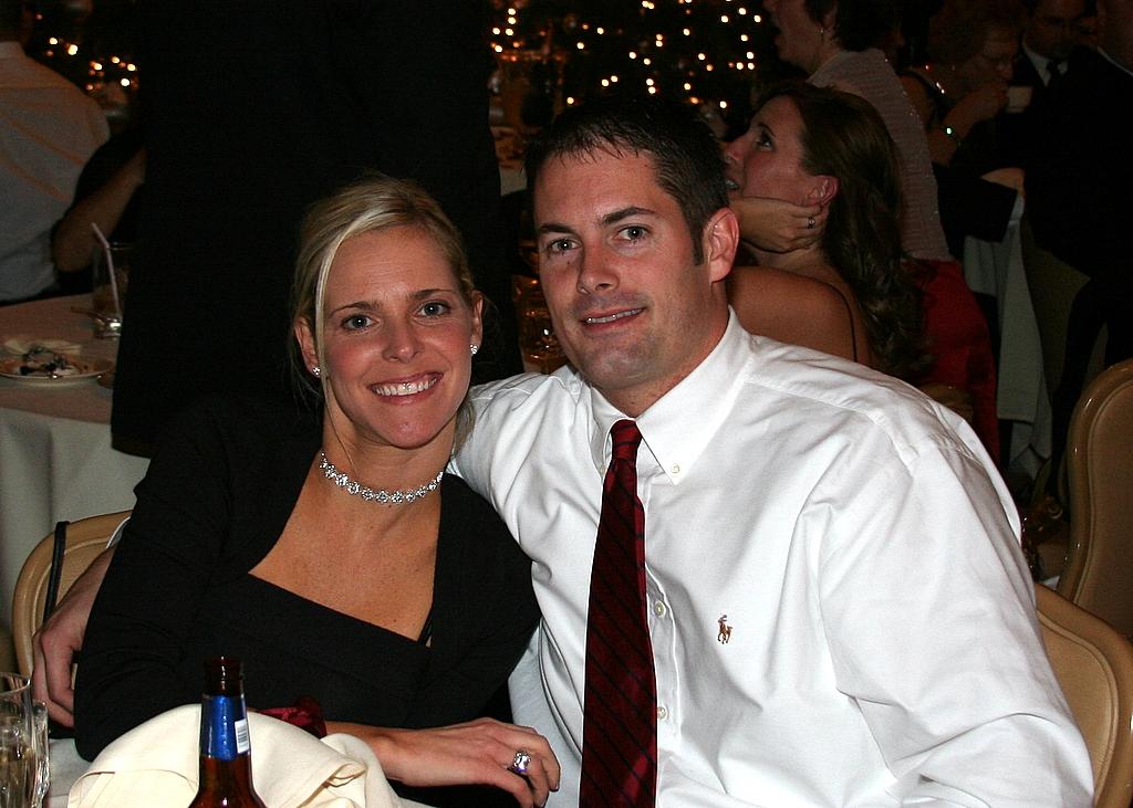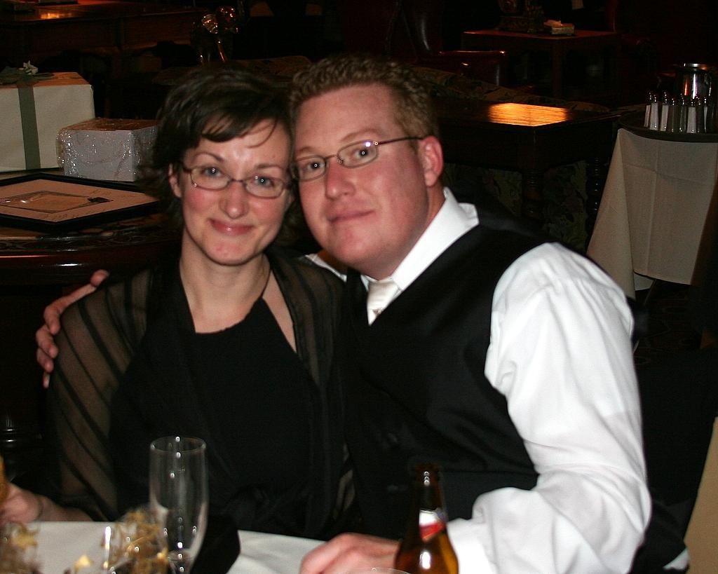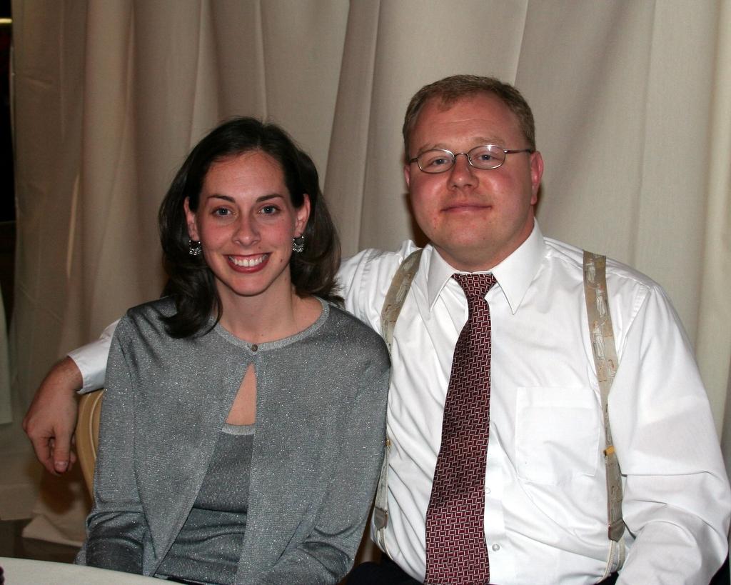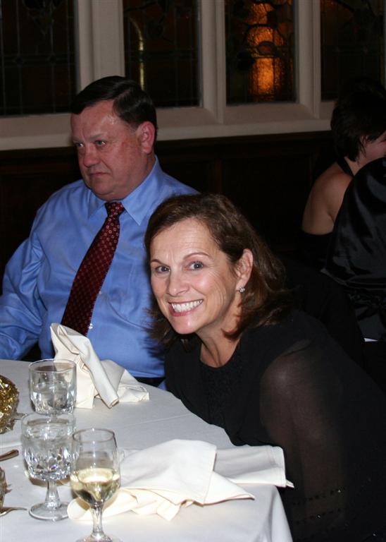 Ok, skipping ahead some, here's the recently wedded bride and groom, beaming in front of the giant Christmas tree in the Columbia Club at the reception.