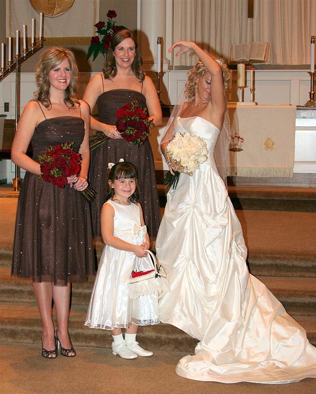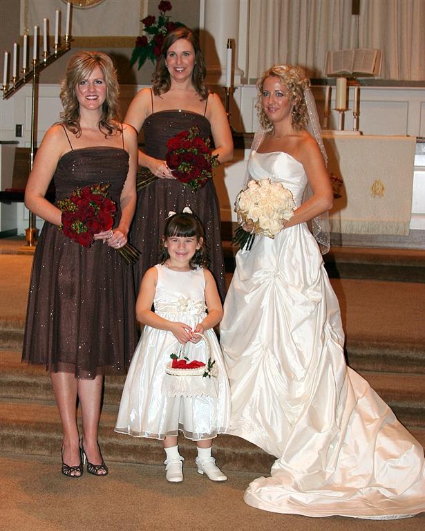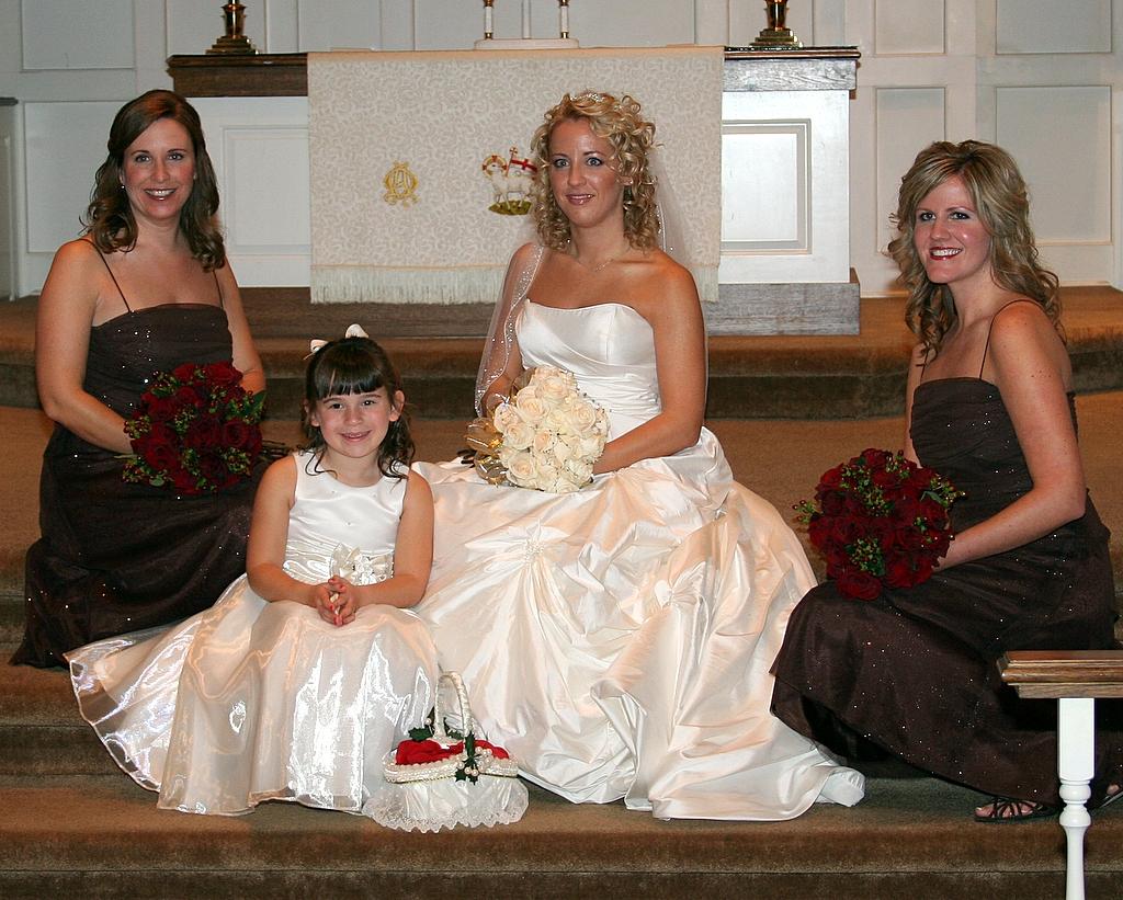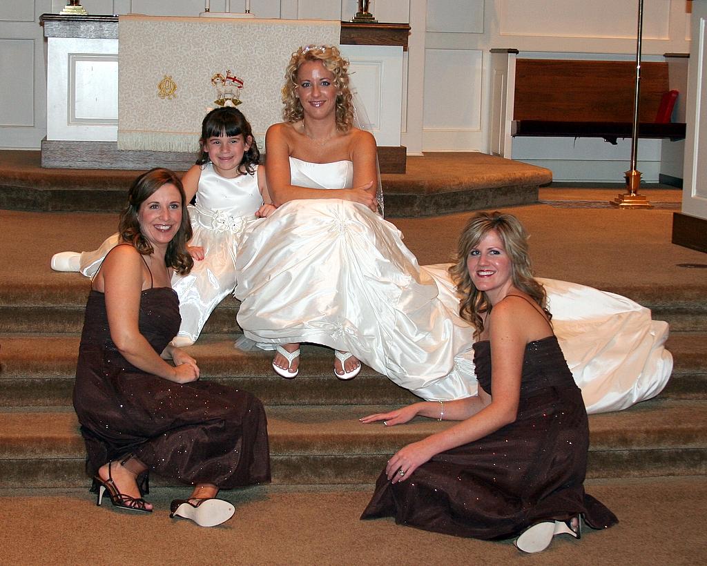The bride, bridesmaids, and the flower girl. Note how happy she looks holding that big basket of flowers - she has analyzed the situation, plotted out her strategy, and now it all comes down to execution.