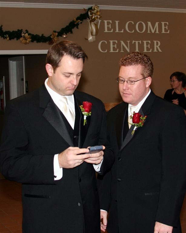 Ryan and company trying to sneak a peek at the bride...