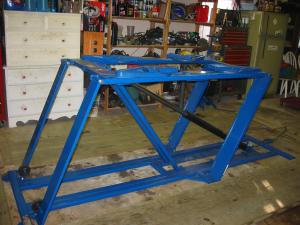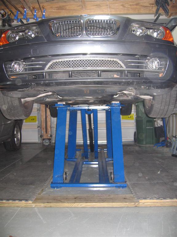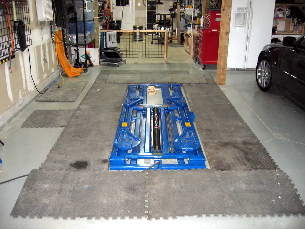 Here's the lift in it's final resting place in the garage. It's got pads all around it to make things a little easier on the knees.