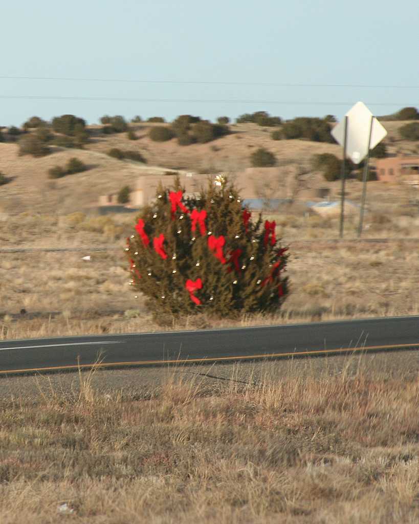 In spite of the lack of any trees around here - they still get into the Christmas spirit. Check out the Christmas Shrub, spotted on the side of the road on the way to Taos.
