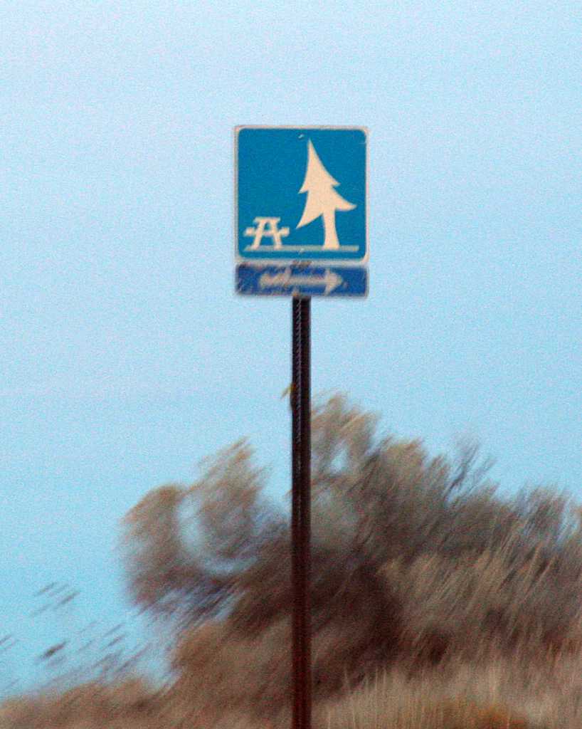 Apparently all kinds of horrible things can befall the unwary traveler to Taos. Here we are being warned that unsuspecting picnic'ers may be attacked by vicious conifer trees. Vicious STEALTH conifer trees since there sure doesn't appear to be ANY trees around here. Those are the worst kind - good thing they warned us - we'll be on the look out.