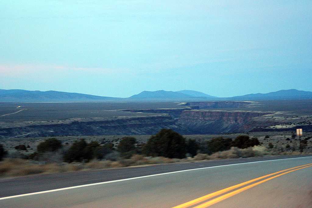 After two conference calls, three production crisises, and 10 miles of driving, we came upon the Rio Grande Gorge. Yes, I know, you can't tell it's there. Like I said, they need warning signs!