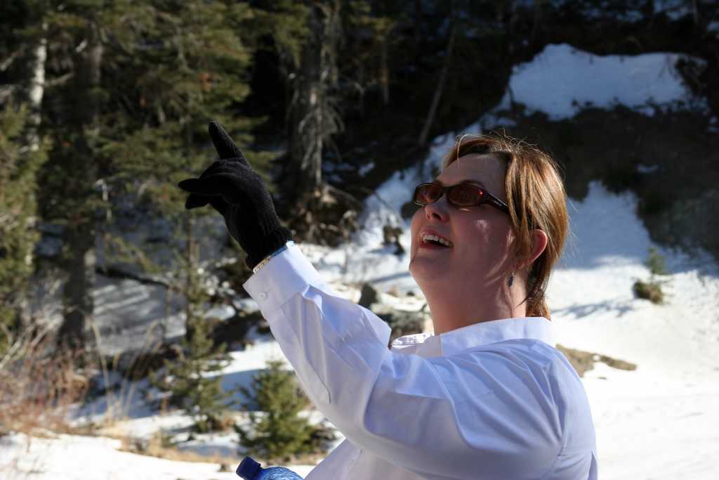 Kristina, just before we began the return trip up the mountian. That peak up there is where we are going, and it's only 800 feet away.