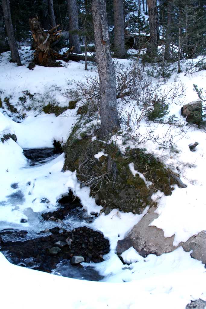 After being shamed by the spandex clad couple and their dog, we struggled to get back to our roots. In this case, we settled for someone elses roots - like this tree, by a nifty frozen brook. Very picturesque. Very not spandex. Very stand very still, catching our breath and um, standing. Very still.