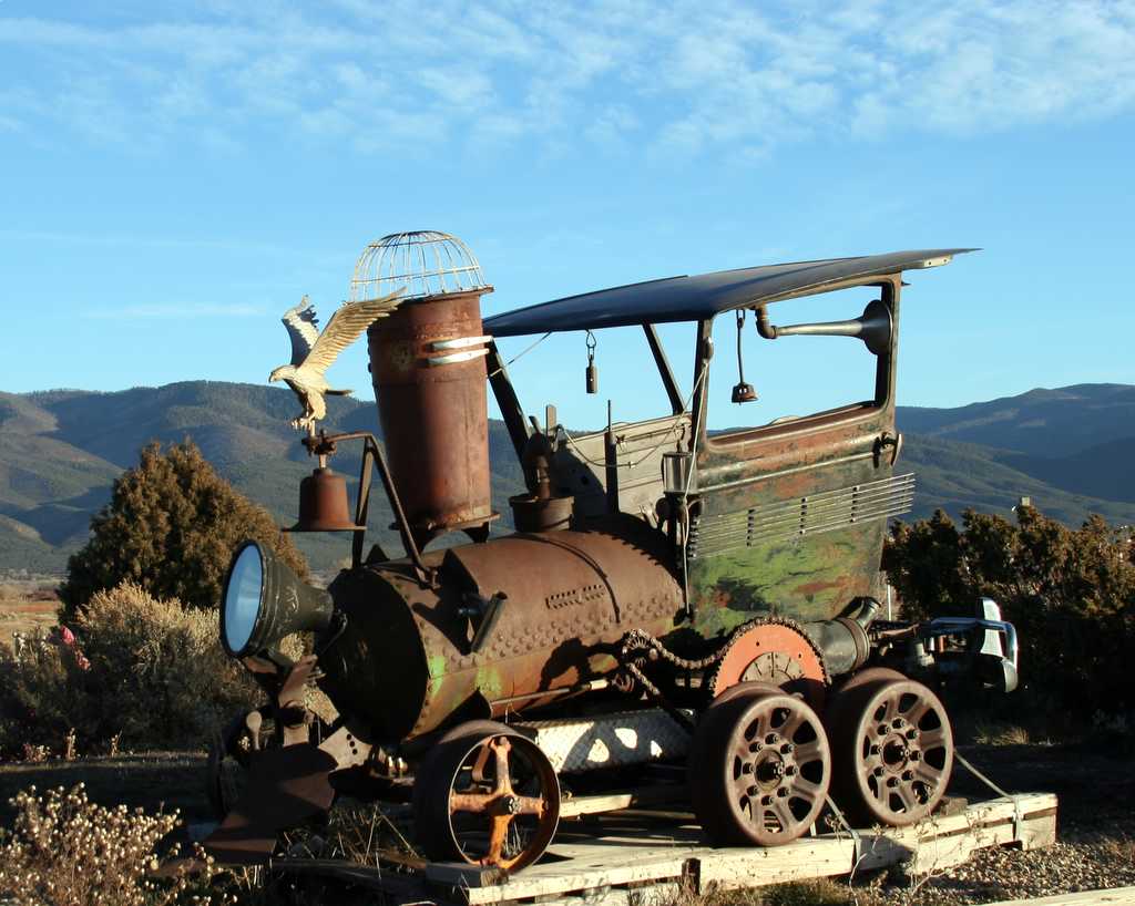 On the way back to the ranch, we came across a sculpture garden with this frankenstien of a train, a jalopy, and a golf cart.