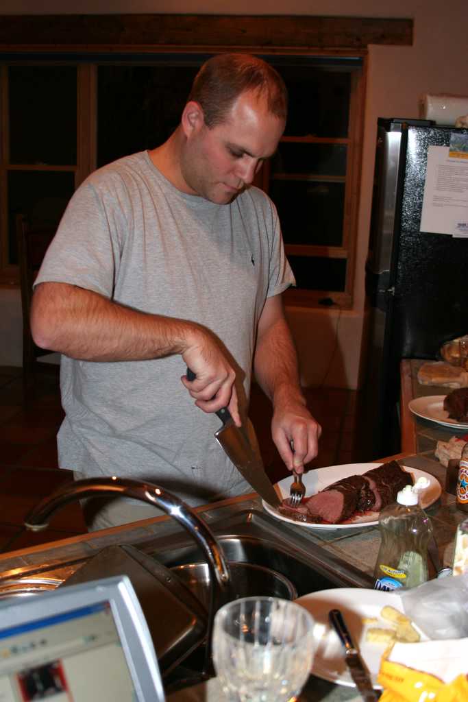 Ryan was assigned the job of slicing the beef. He did so with skill and speed. And a knife.