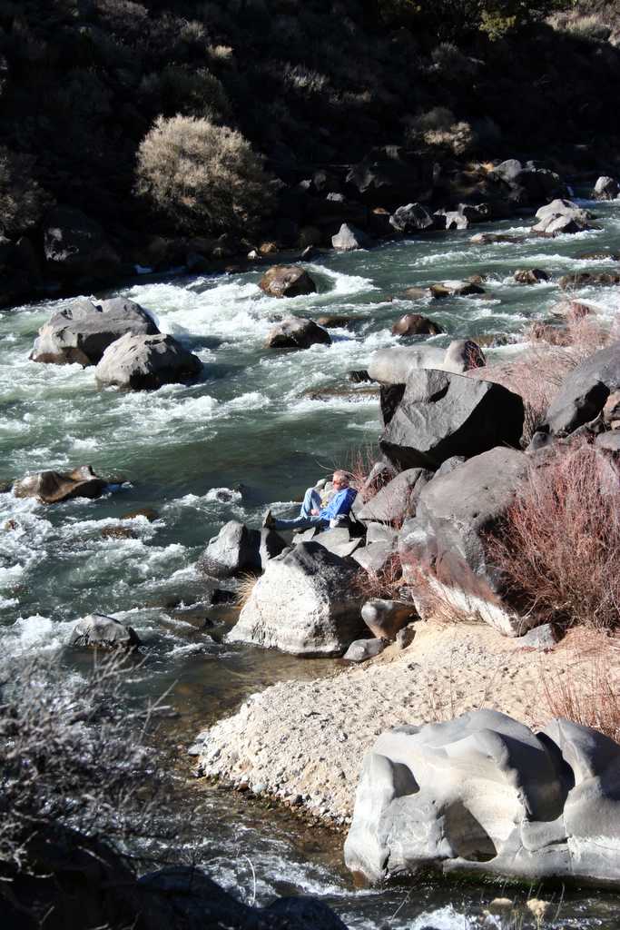 So, here's Will hanging out at the river at the bottom of that mountian. This happens to be the Red River and the Rio Grande, right where they meet. As in EXACTLY where they meet. It's not as dramatic as one might think.