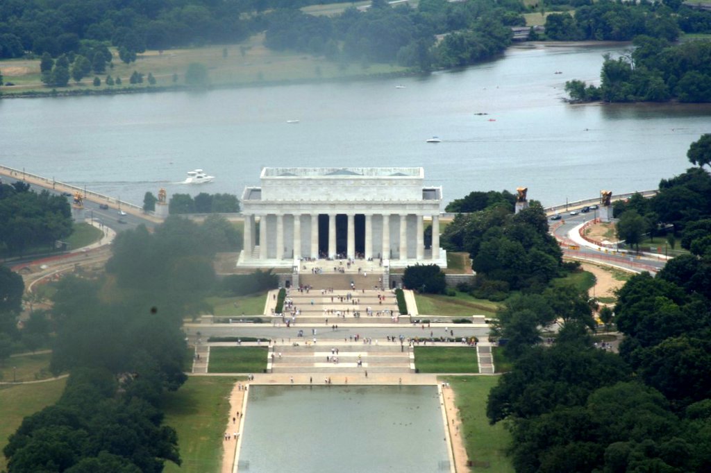 Zoomed in on the Lincoln Memorial from the Washington Monument.