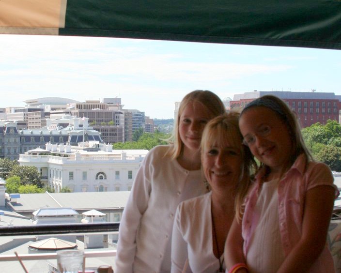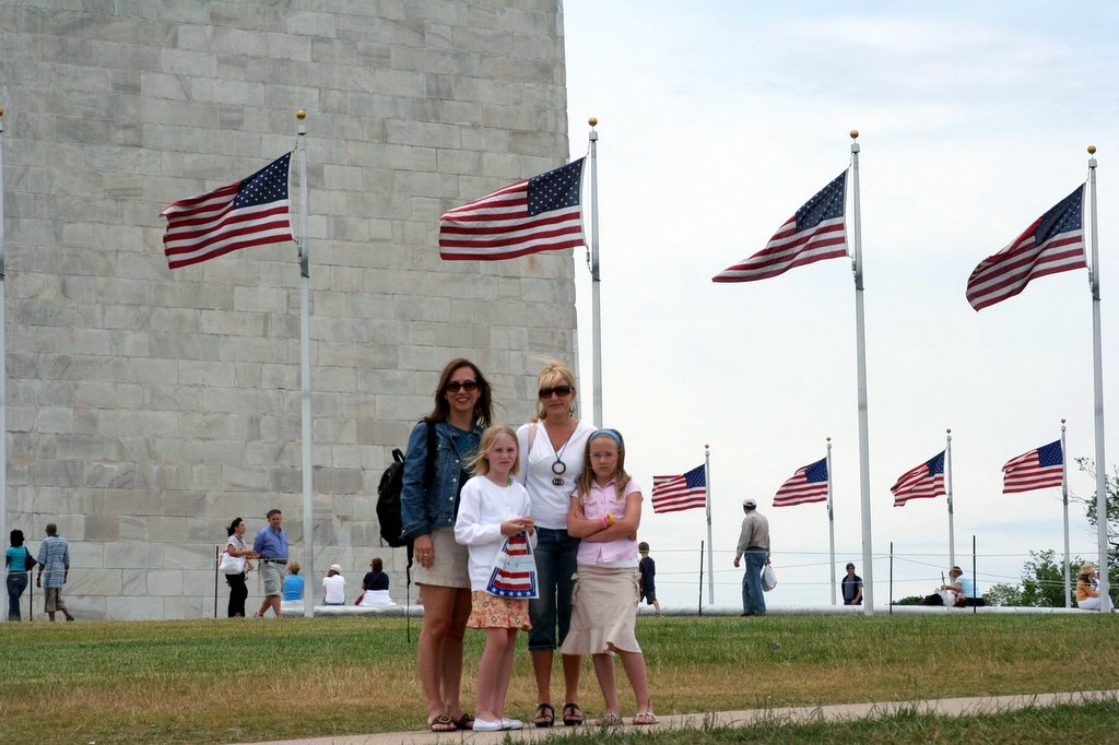 Kristina, Jennifer, and the girls, at the base of the Washington Monument.
