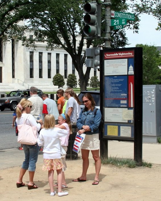 We all hang out waiting for the Tourmobile. Good times on Constitution Ave.